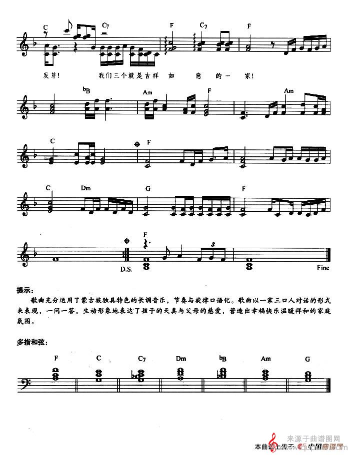 曲谱图网为您提供吉祥三宝(带歌词提示版)找谱子,就上曲谱图网。