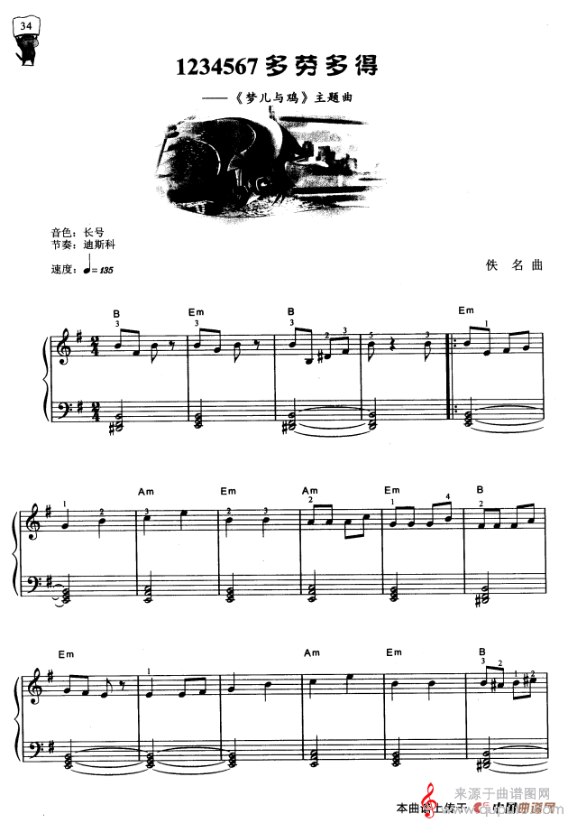 曲谱图网为您提供1234567多劳多得(《梦儿与鸡》主题曲)找谱子,就上曲谱图网。