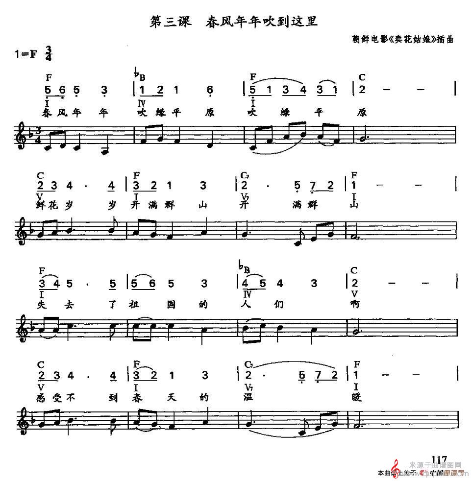 曲谱图网为您提供春风年年吹到这里(朝鲜电影《卖花姑娘》插曲)找谱子,就上曲谱图网。