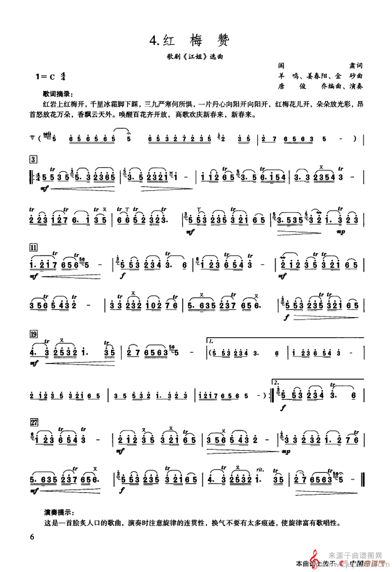 曲谱图网为您提供红梅赞简谱(红梅赞原唱歌词)找谱子,就上曲谱图网。
