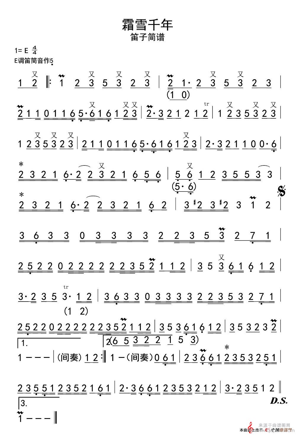 曲谱图网为您提供霜雪千年简谱(霜雪千年笛箫曲谱)找谱子,就上曲谱图网。