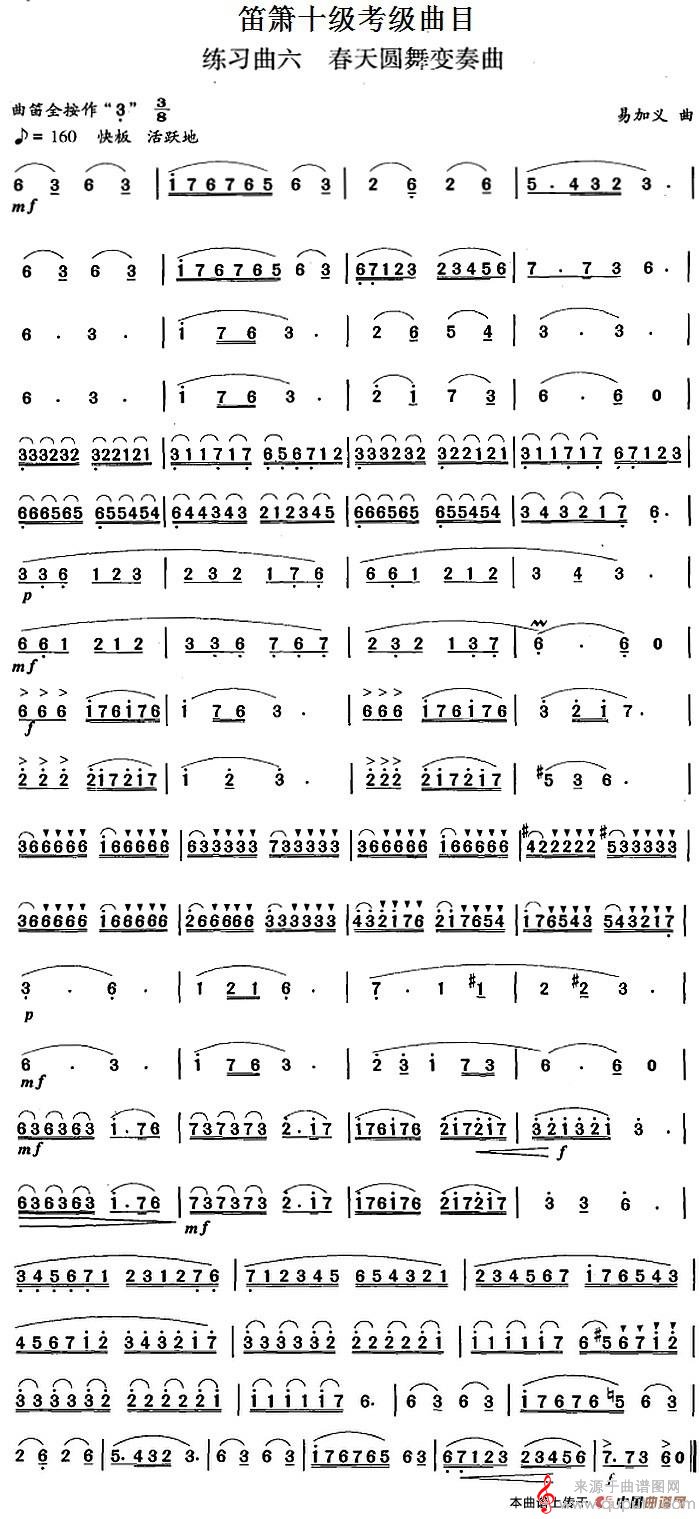 笛箫十级考级曲目:练习曲六(春天圆舞变奏曲)(笛箫)