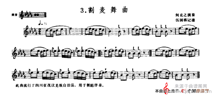 曲谱图网为您提供割麦舞曲(割麦舞曲羌笛)找谱子,就上曲谱图网。