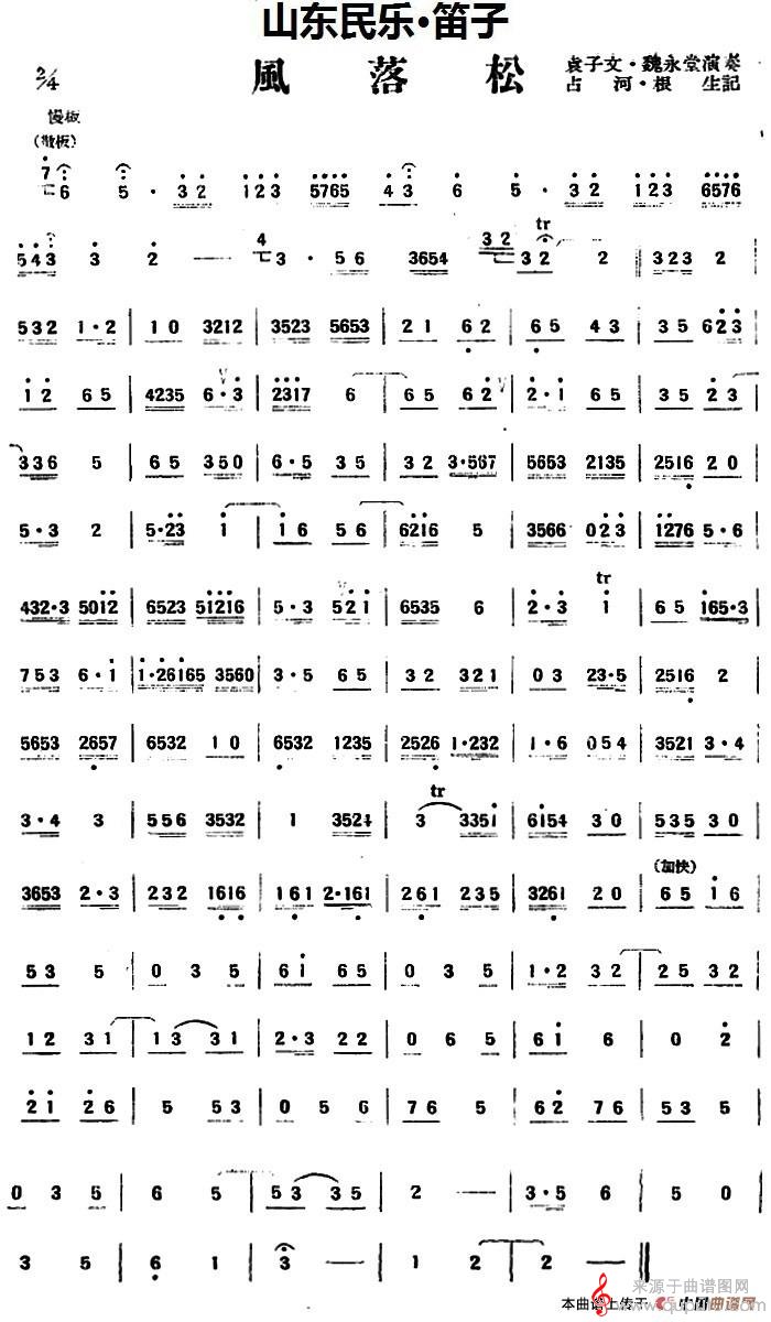曲谱图网为您提供风落松(山东民乐、笛子)找谱子,就上曲谱图网。