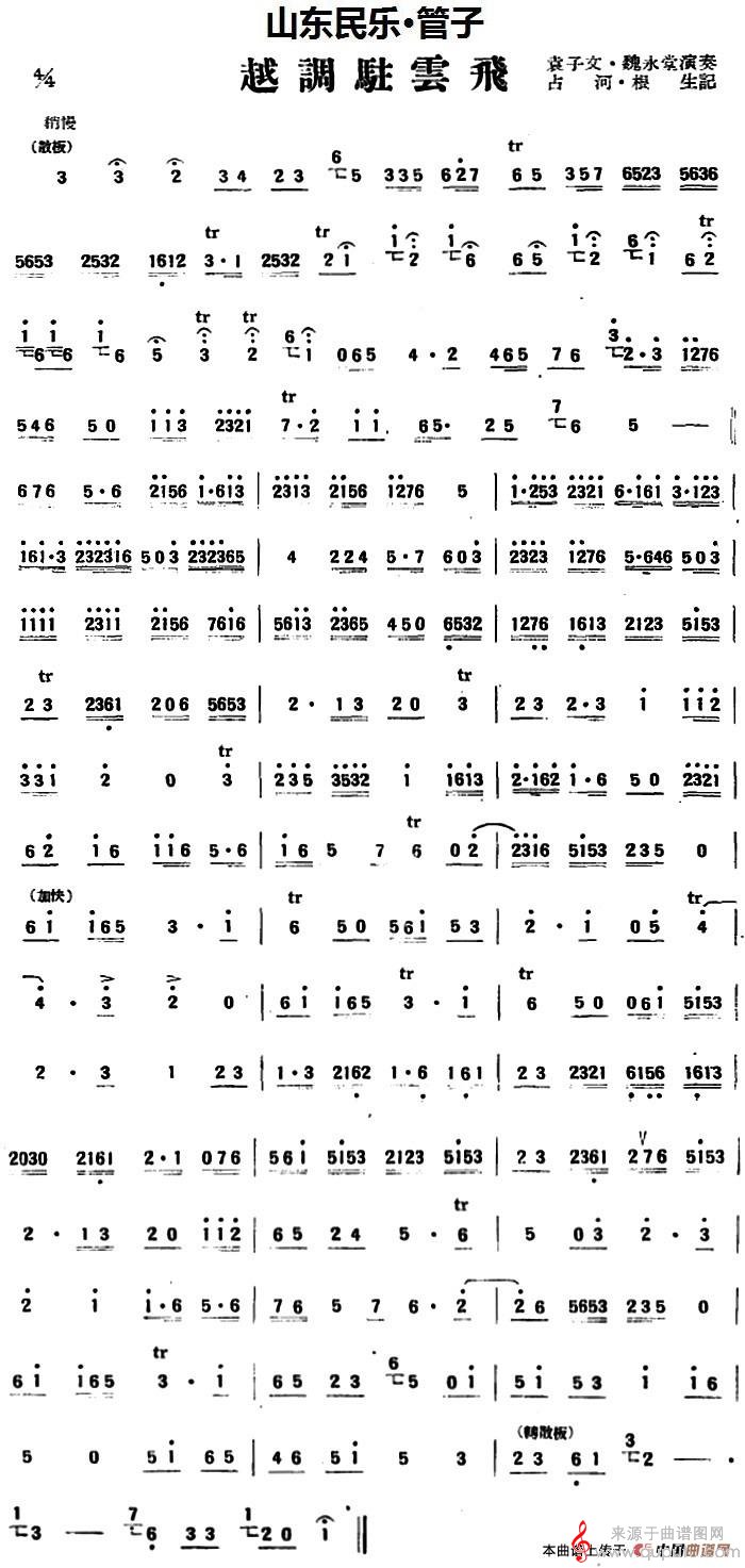 曲谱图网为您提供越调驻云飞(越调驻云飞山东民乐、笛子)找谱子,就上曲谱图网。