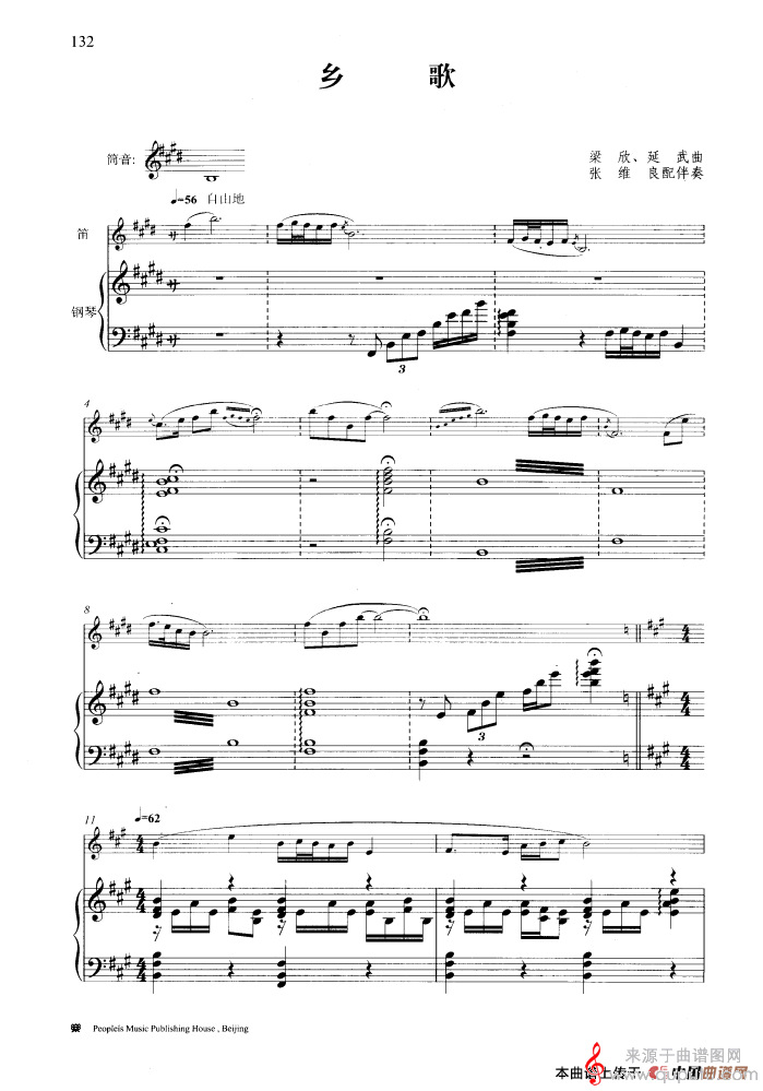 曲谱图网为您提供乡歌(乡歌竹笛简谱)找谱子,就上曲谱图网。