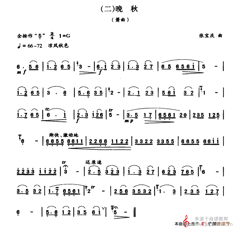 曲谱图网为您提供晚秋(晚秋歌曲歌词箫)找谱子,就上曲谱图网。