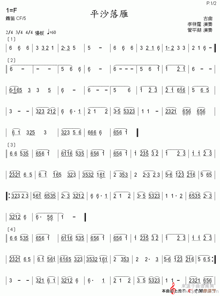 平沙落雁简谱(平沙落雁洞箫合奏简谱)