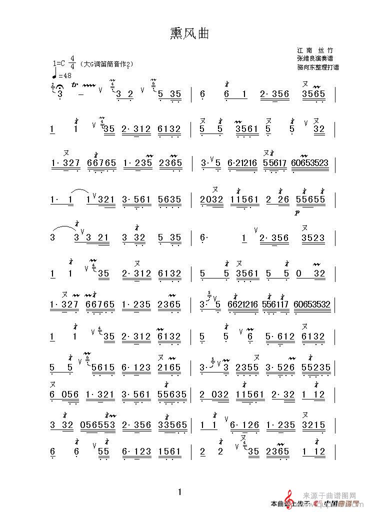 曲谱图网为您提供熏风曲简谱(熏风曲笛子独奏简谱)找谱子,就上曲谱图网。