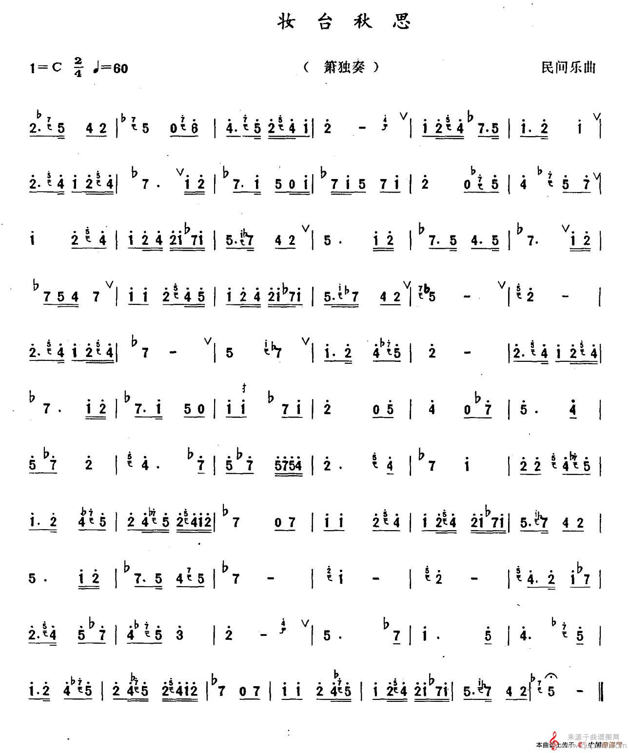 曲谱图网为您提供妆台秋思简谱(妆台秋思箫独奏曲谱)找谱子,就上曲谱图网。