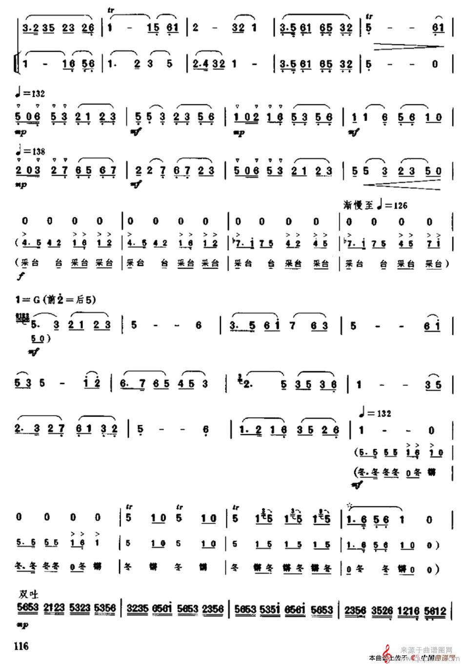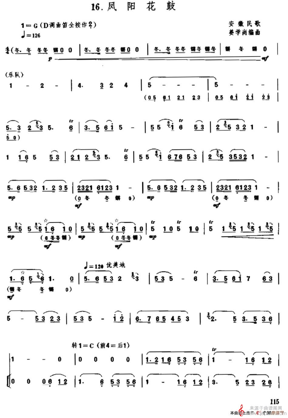 曲谱图网为您提供凤阳花鼓简谱(凤阳花鼓竹笛二重奏简谱)找谱子,就上曲谱图网。