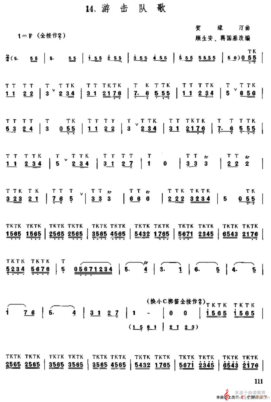 曲谱图网为您提供游击队歌简谱(游击队歌笛子独奏曲谱)找谱子,就上曲谱图网。