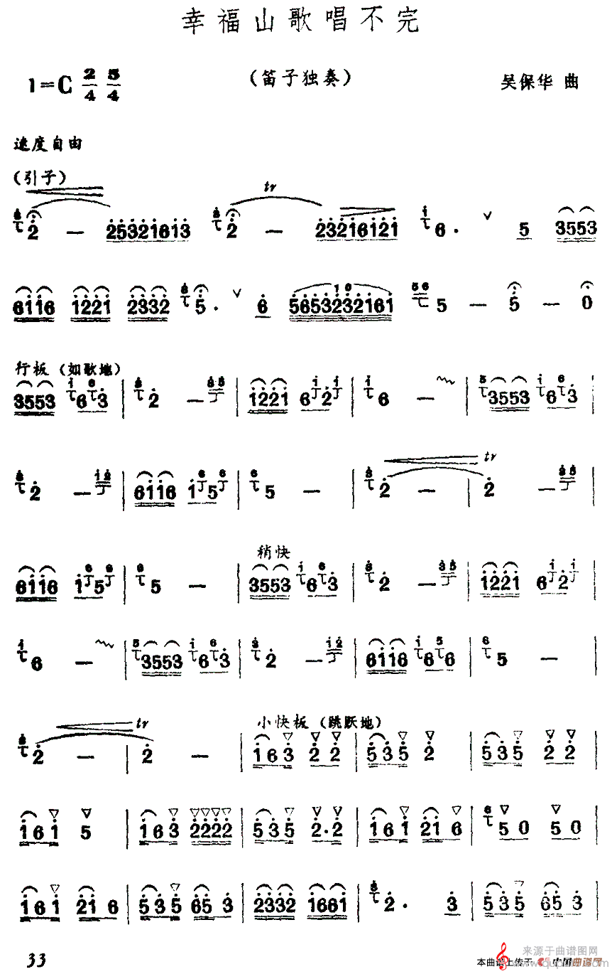 曲谱图网为您提供幸福山歌唱不完简谱(幸福山歌唱不完笛子独奏曲谱)找谱子,就上曲谱图网。
