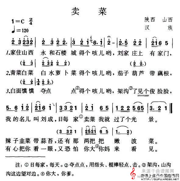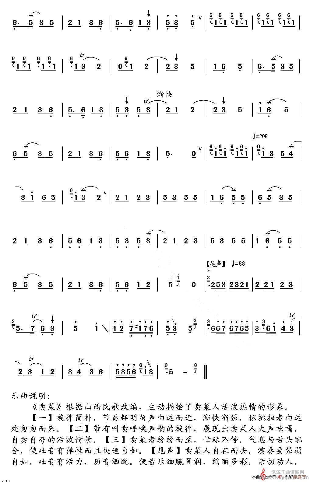 曲谱图网为您提供卖菜山西民歌简谱(卖菜梆笛独奏曲谱)找谱子,就上曲谱图网。