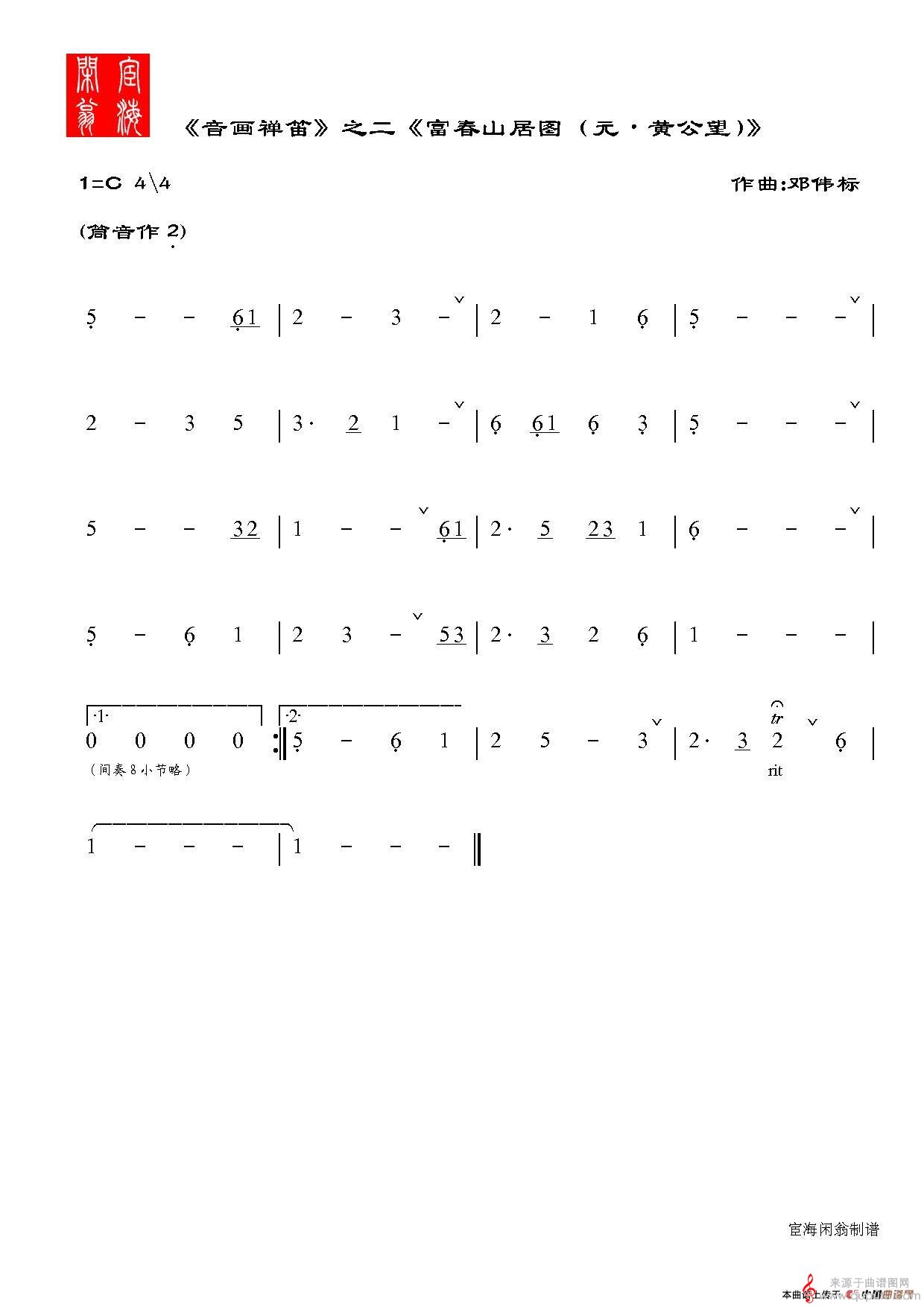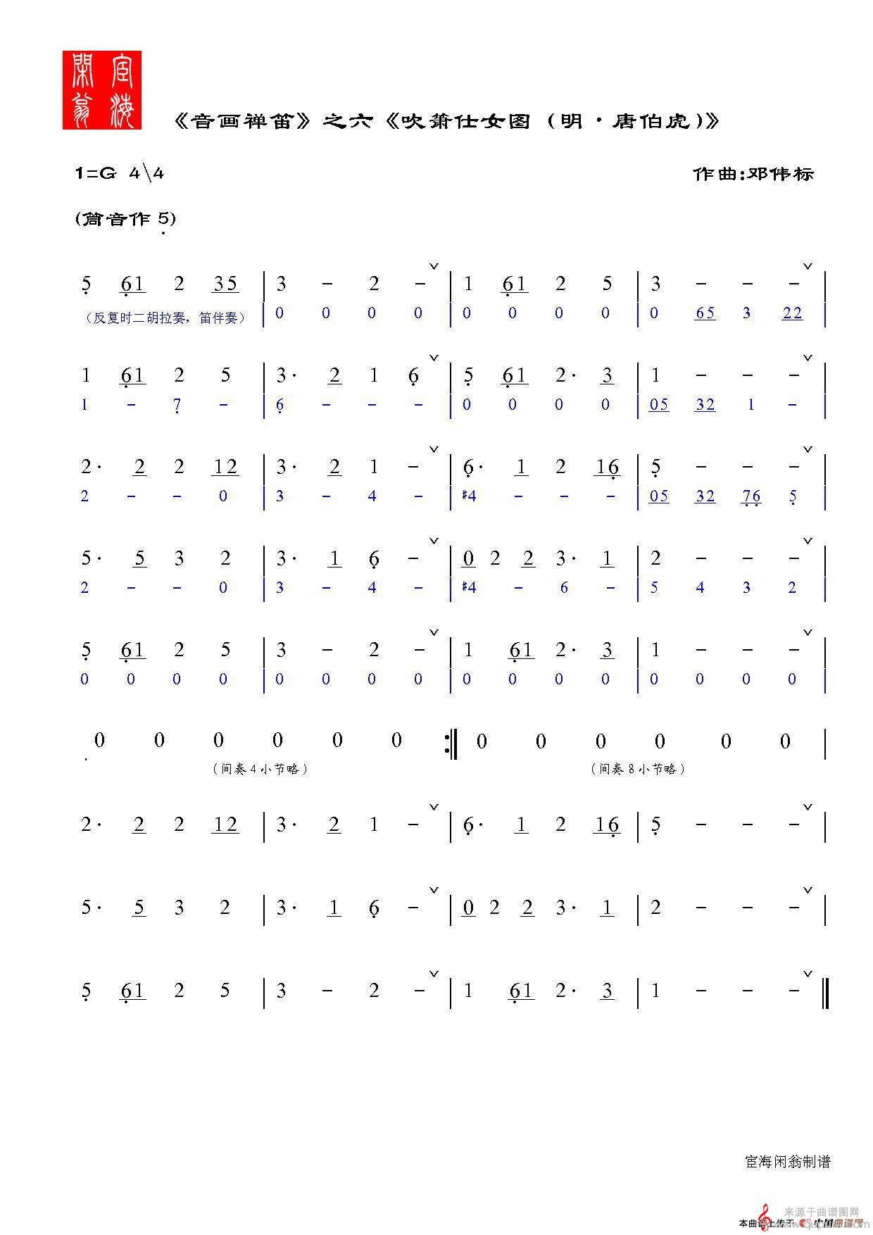 曲谱图网为您提供音画禅笛原创笛箫乐曲(音画禅笛箫曲乐曲谱)找谱子,就上曲谱图网。