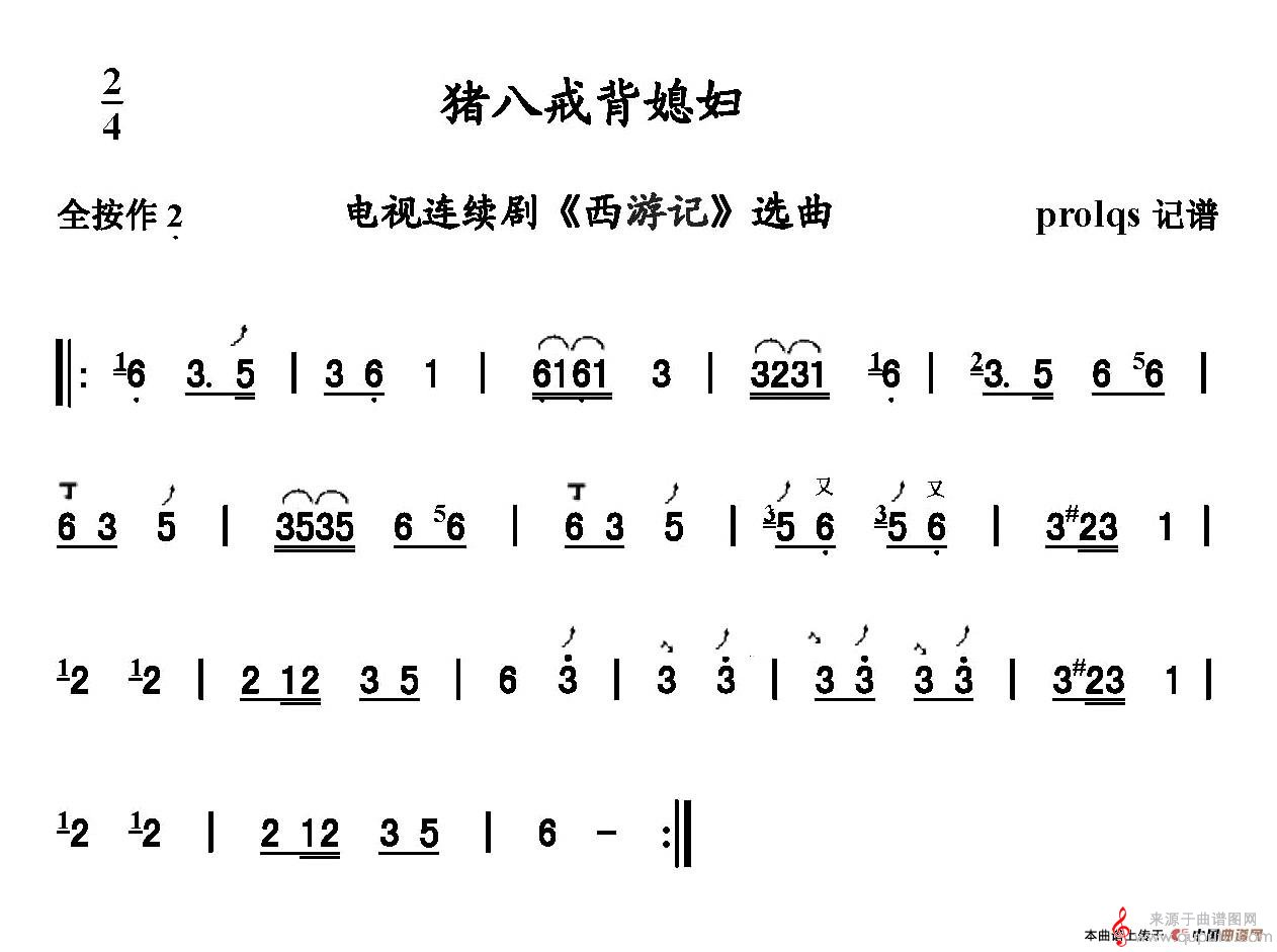 当前位置:曲谱图网器乐曲谱笛箫猪八戒背媳妇简谱(猪八戒背媳妇洞箫曲谱笛子谱)