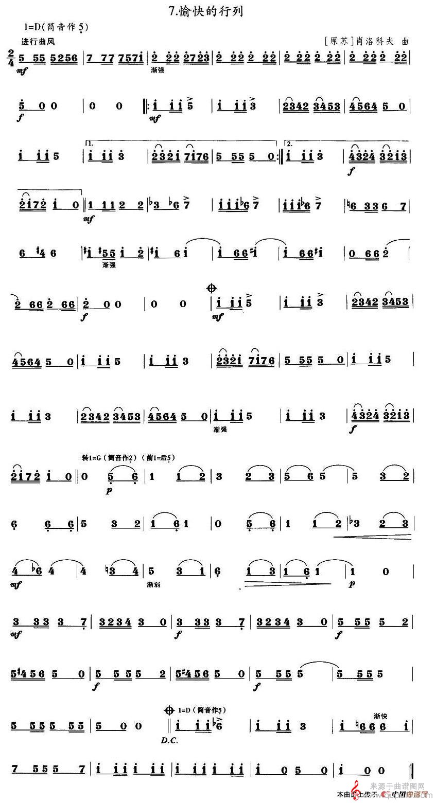 愉快的行列曲谱(愉快的行列洞箫独奏简谱)