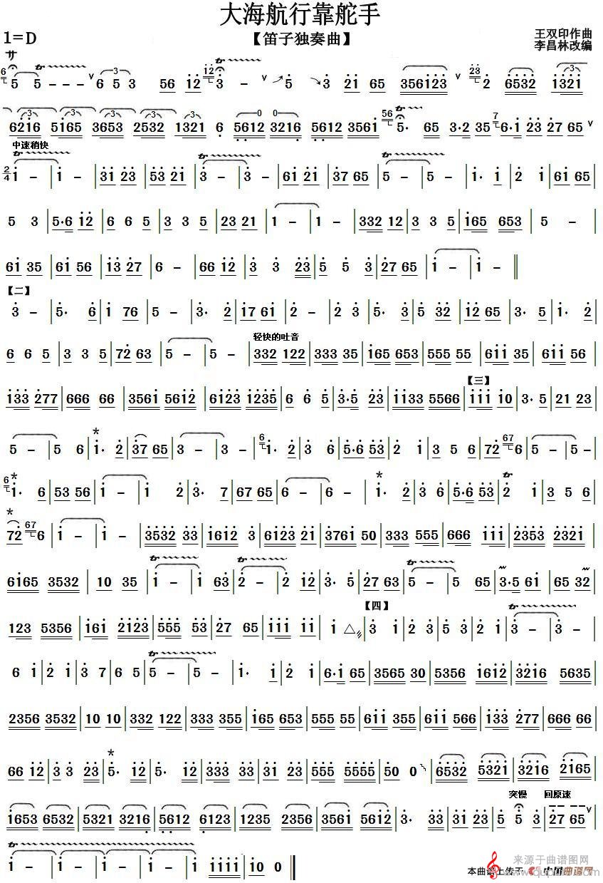大海航行靠舵手简谱(大海航行靠舵手笛子独奏曲曲谱)