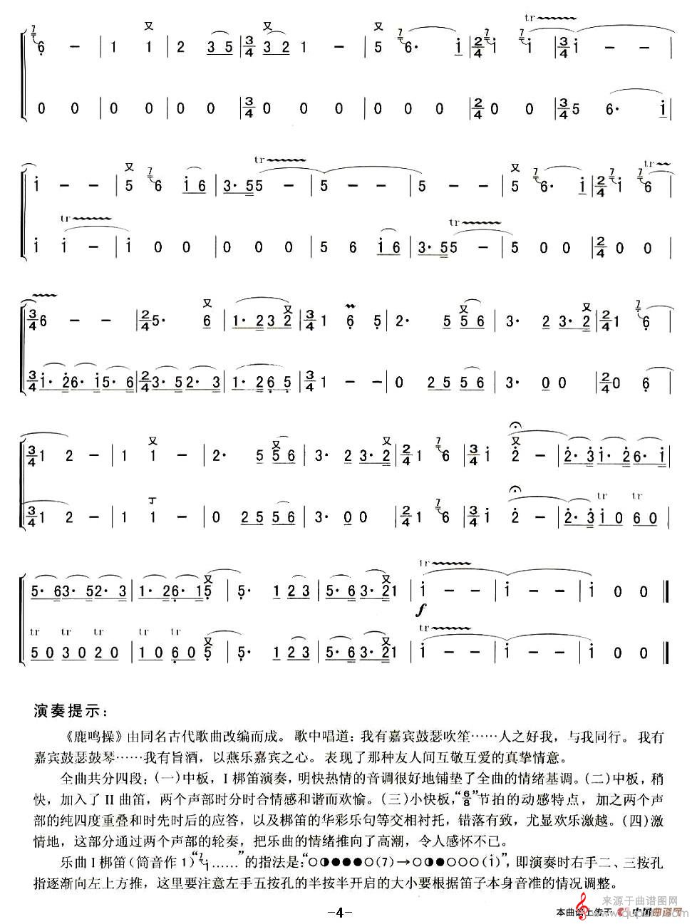 曲谱图网为您提供鹿鸣操曲谱(鹿鸣操洞箫二重奏简谱)找谱子,就上曲谱图网。