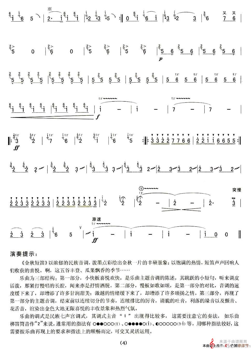 曲谱图网为您提供金秋短笛曲谱(金秋短笛笛子独奏简谱)找谱子,就上曲谱图网。