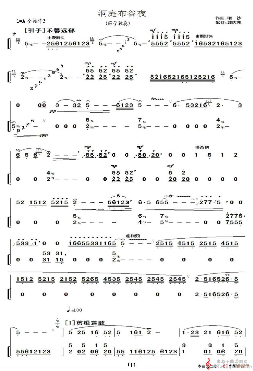 曲谱图网为您提供洞庭布谷夜简谱(洞庭布谷夜笛子独奏曲谱)找谱子,就上曲谱图网。