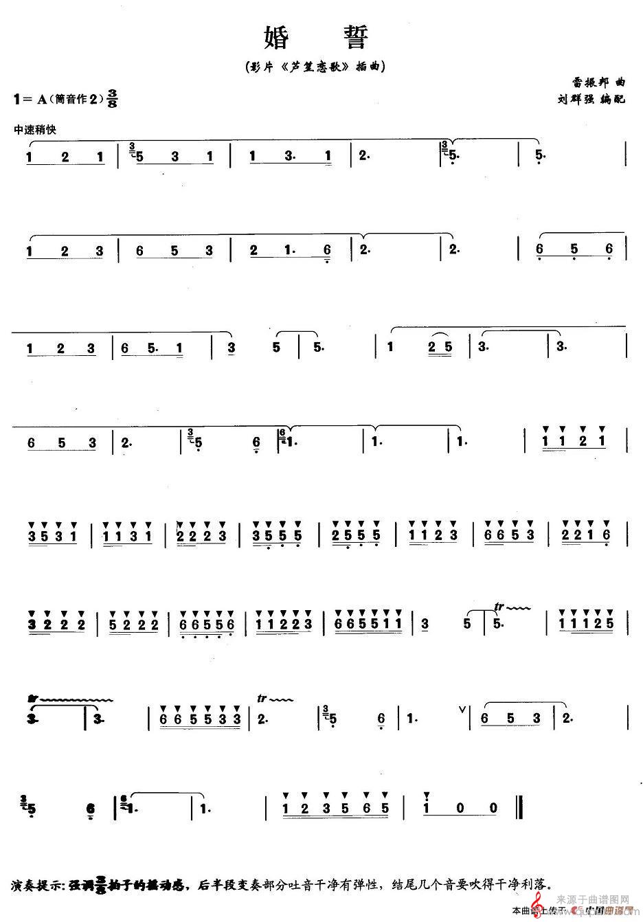 曲谱图网为您提供婚誓曲谱(婚誓洞箫竖笛演奏曲谱)找谱子,就上曲谱图网。