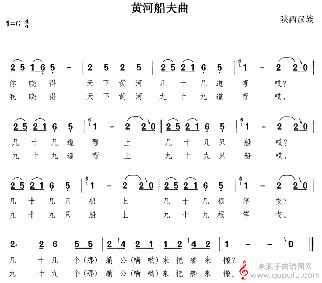 曲谱图网为您提供黄河船夫曲民歌曲谱(黄河船夫曲洞箫乐曲曲谱)找谱子,就上曲谱图网。