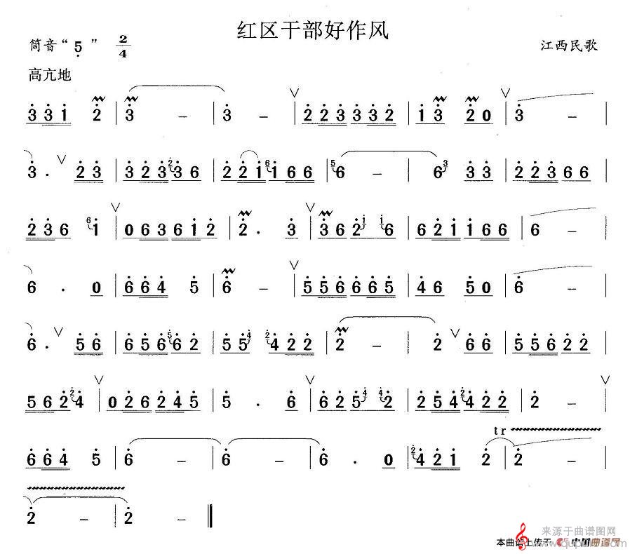 红区干部好作风民歌曲谱(红区干部好作风洞箫乐曲曲谱)