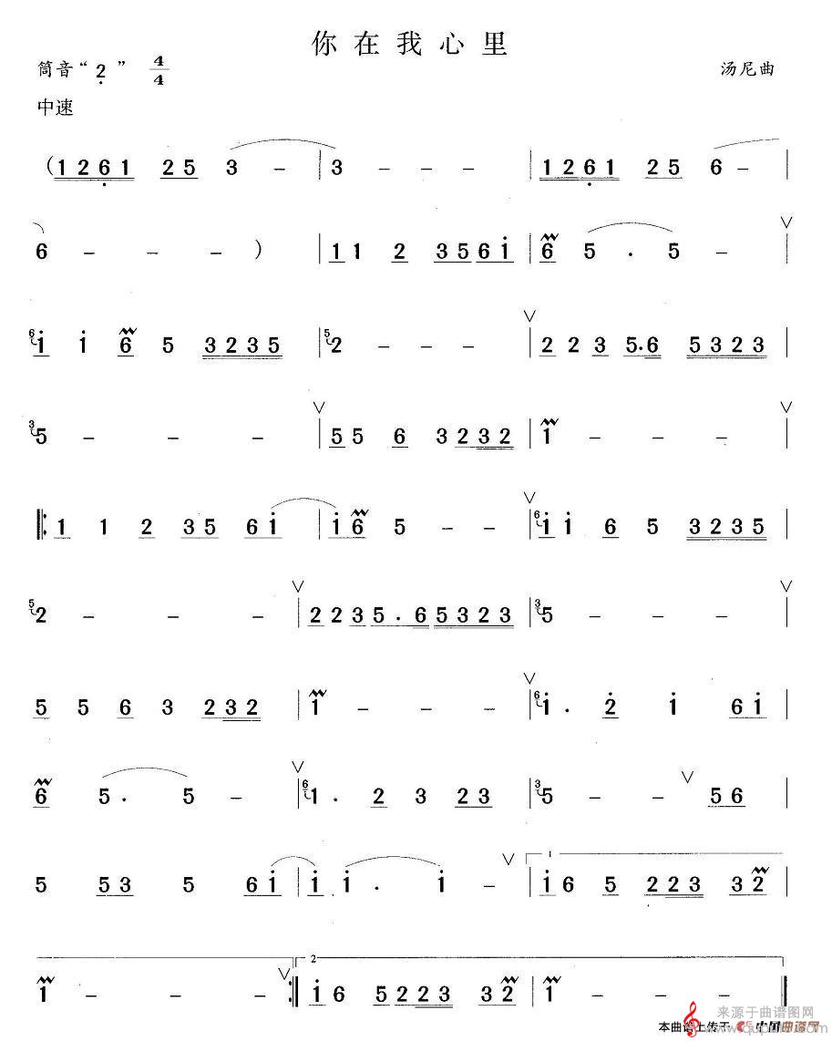 曲谱图网为您提供你在我心里简谱(你在我心里笛子曲谱)找谱子,就上曲谱图网。