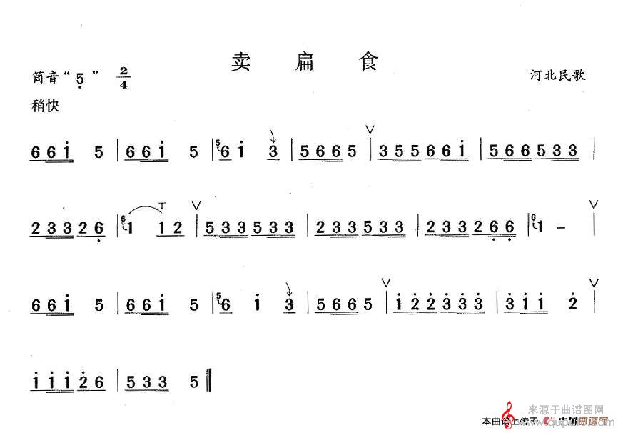 曲谱图网为您提供卖扁食民歌简谱(卖扁食笛子演奏曲谱)找谱子,就上曲谱图网。
