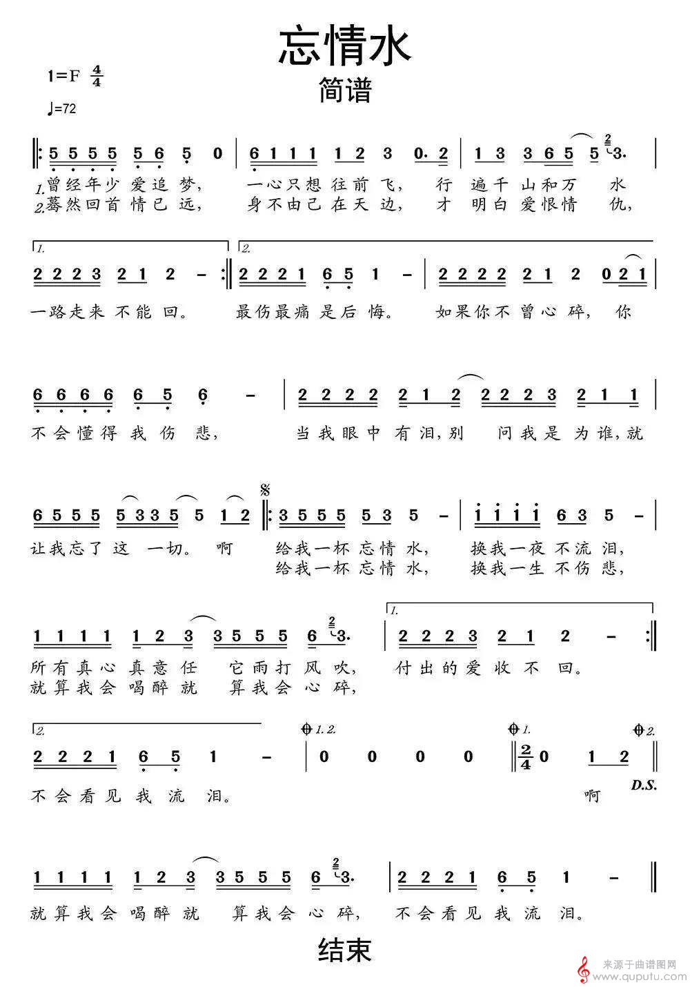 曲谱图网为您提供忘情水歌曲曲谱(忘情水竖笛演奏简谱)找谱子,就上曲谱图网。