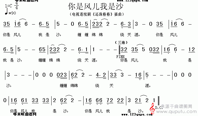曲谱图网为您提供你是风儿我是沙简谱(你是风儿我是沙笛子独奏简谱)找谱子,就上曲谱图网。