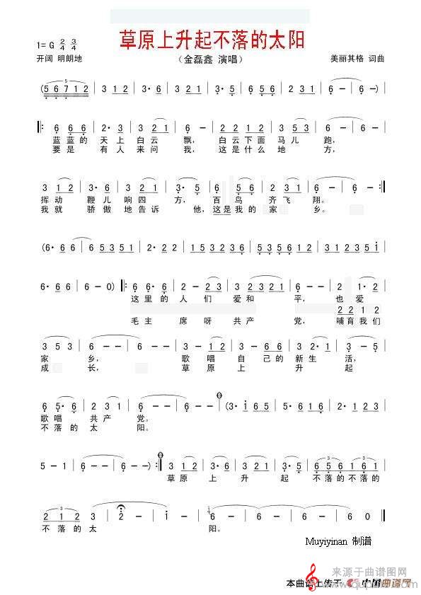 曲谱图网为您提供草原上升起不落的太阳曲谱(草原上升起不落的太阳洞箫独奏简谱)找谱子,就上曲谱图网。