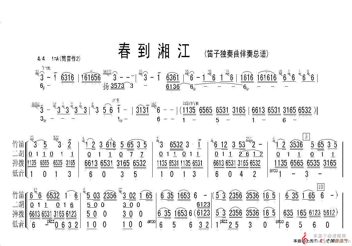 曲谱图网为您提供春到湘江简谱(春到湘江笛子独奏曲曲谱)找谱子,就上曲谱图网。