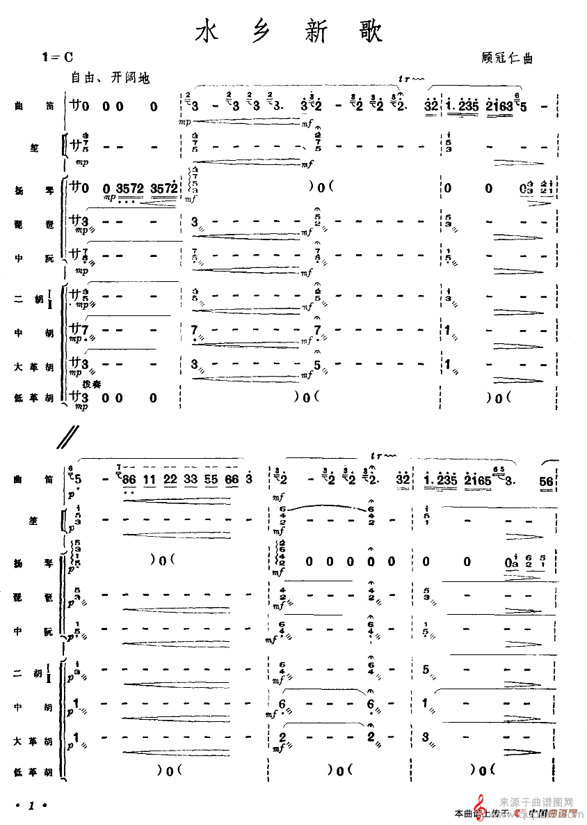 曲谱图网为您提供水乡新歌简谱(水乡新歌曲笛+民乐队伴奏简谱)找谱子,就上曲谱图网。