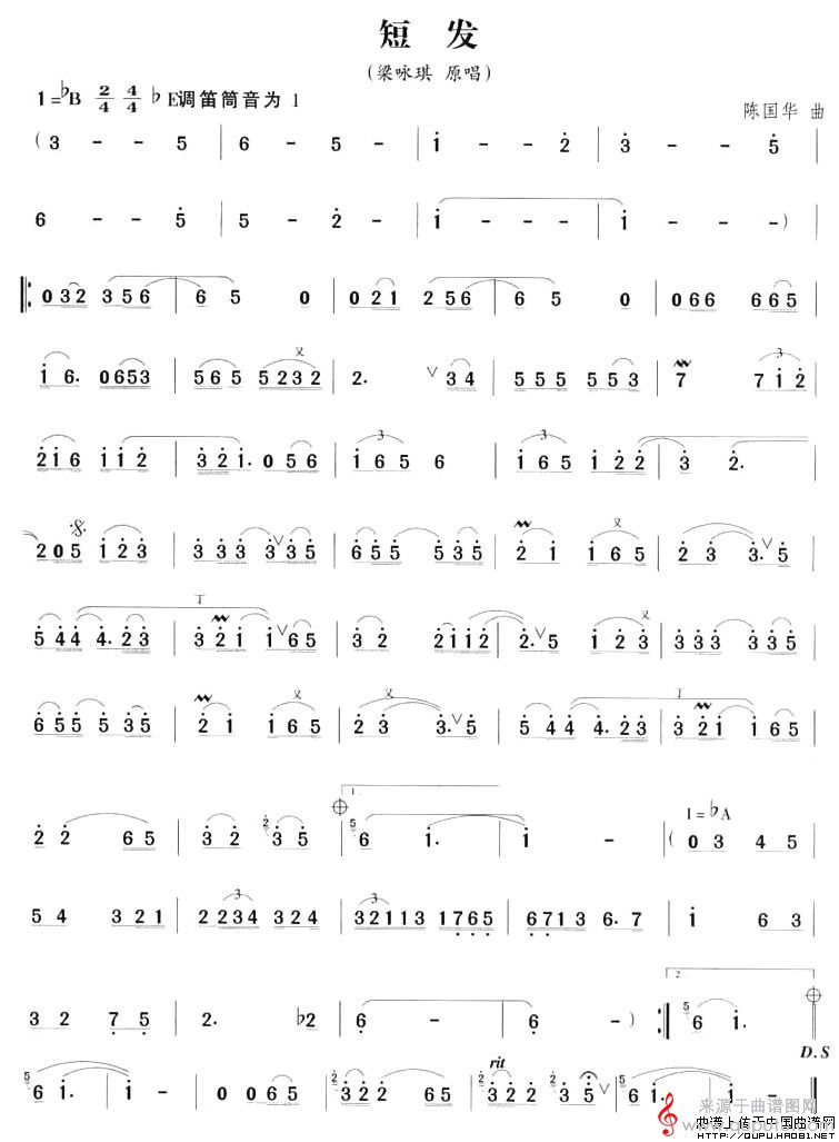 曲谱图网为您提供短发简谱(短发笛箫乐曲曲谱)找谱子,就上曲谱图网。
