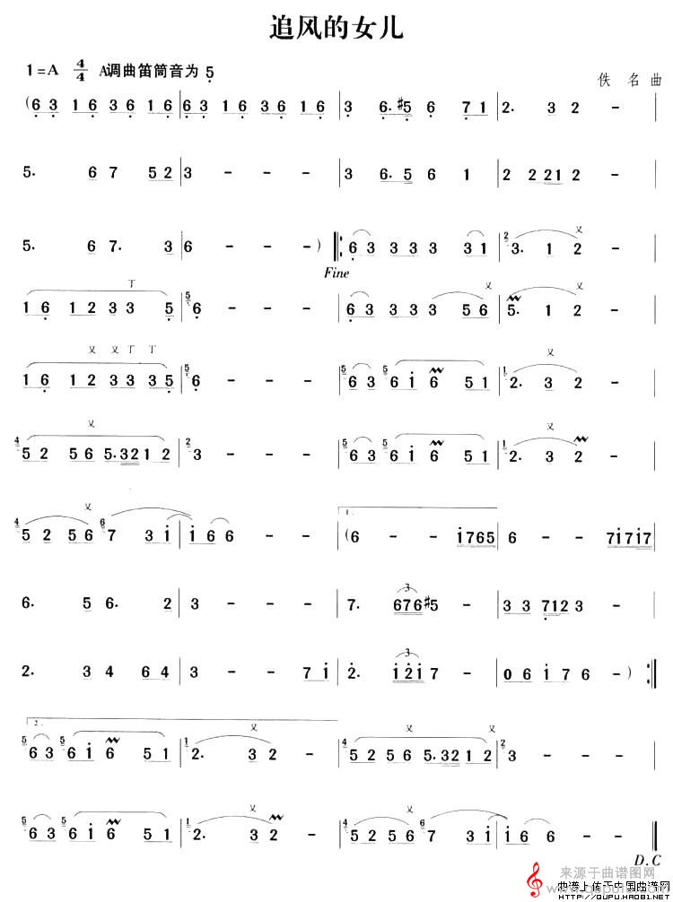曲谱图网为您提供追风的女儿曲谱(追风的女儿笛箫乐曲曲谱)找谱子,就上曲谱图网。