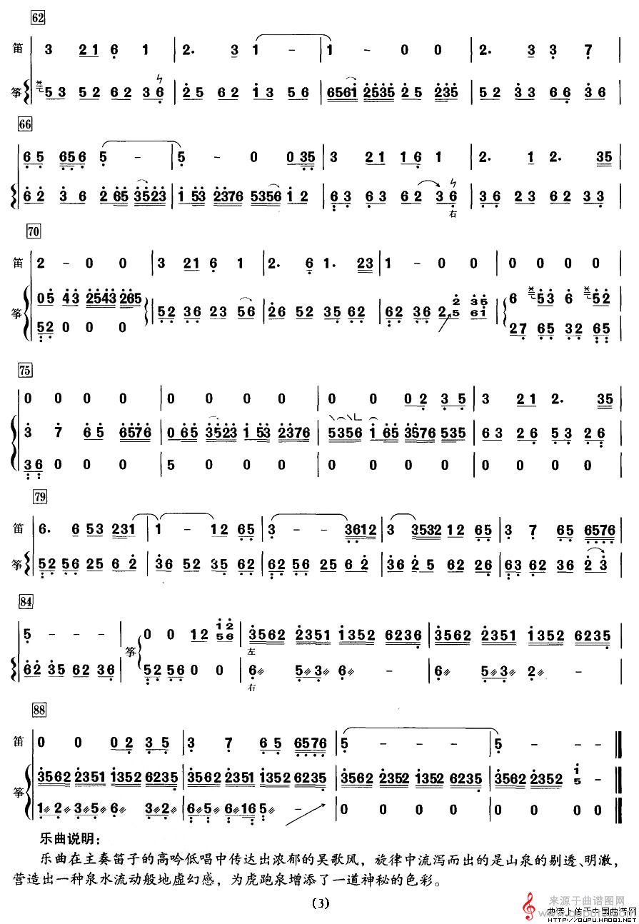 曲谱图网为您提供虎跑听泉简谱(虎跑听泉笛子与古筝演奏简谱)找谱子,就上曲谱图网。