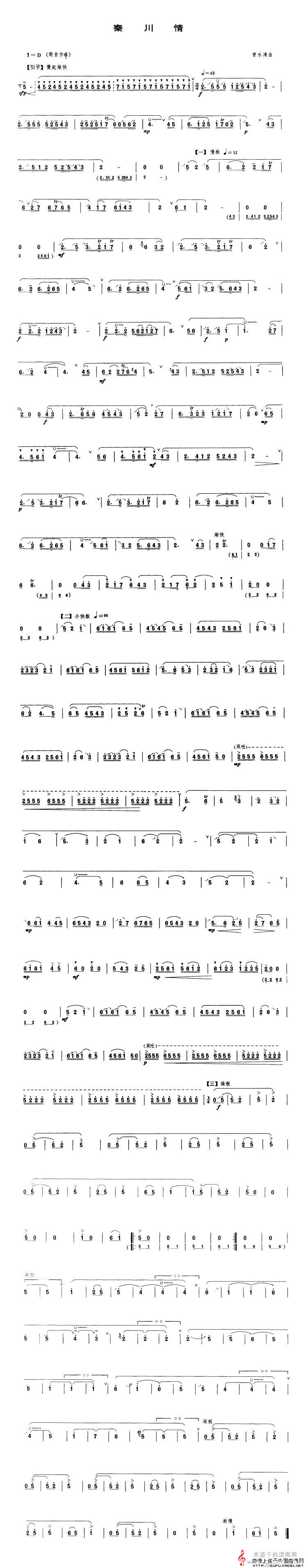 当前位置:曲谱图网器乐曲谱笛箫秦川情简谱(秦川情笛子演奏曲谱)