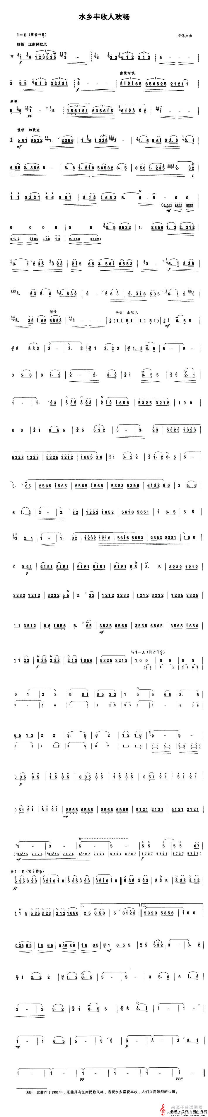 水乡丰收人欢畅民歌简谱(水乡丰收人欢畅竹笛演奏简谱)