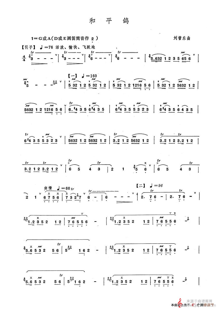 和平鸽简谱(和平鸽笛子演奏简谱)