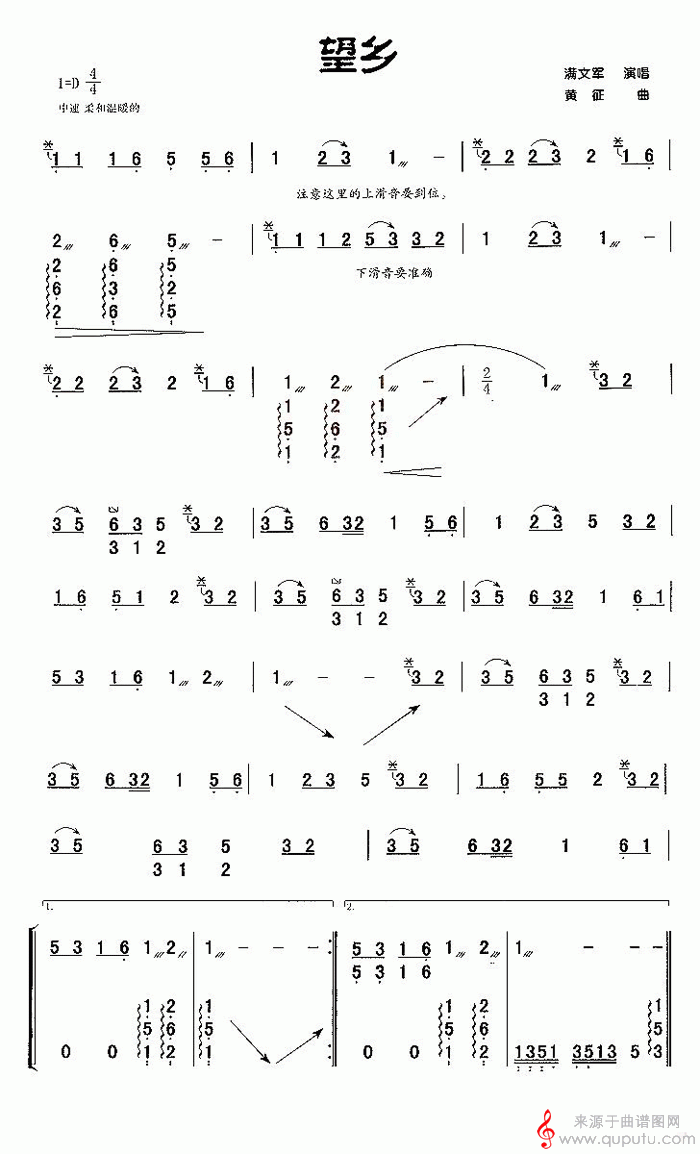 曲谱图网为您提供望乡(古筝曲演奏简谱)找谱子,就上曲谱图网。