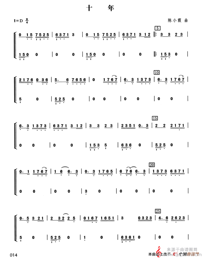 曲谱图网为您提供十年(十年原创简谱)找谱子,就上曲谱图网。