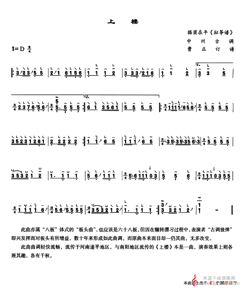 曲谱图网为您提供上楼(中州古调、曹正订谱上楼简谱练习)找谱子,就上曲谱图网。