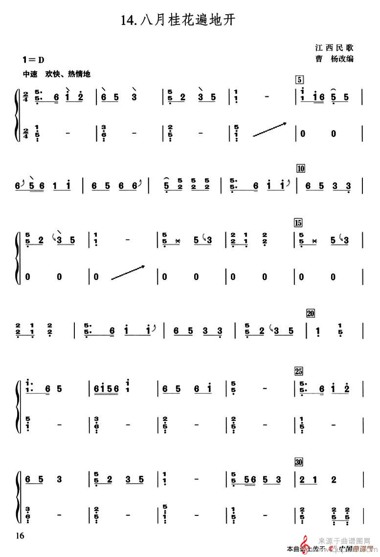 曲谱图网为您提供八月桂花遍地开(江西民歌、曹阳改编版八月桂花遍地开简谱)找谱子,就上曲谱图网。