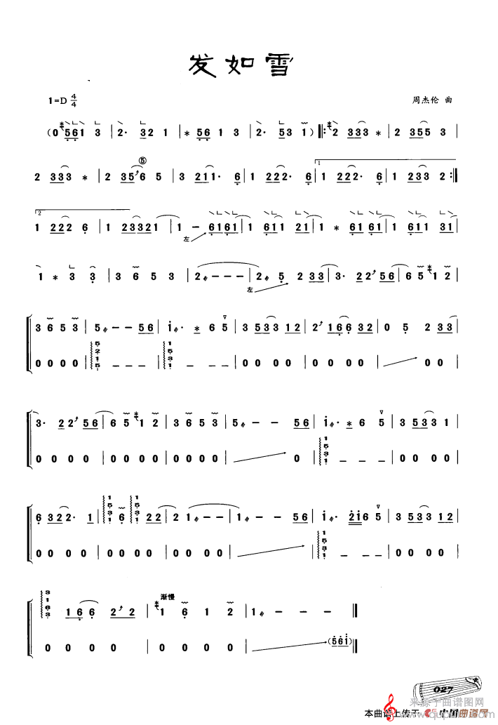 曲谱图网为您提供古筝独奏:发如雪(发如雪简谱教学)找谱子,就上曲谱图网。