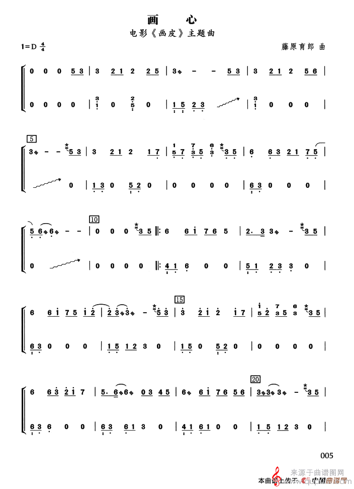 曲谱图网为您提供古筝独奏:画心(画心简谱曲谱)找谱子,就上曲谱图网。