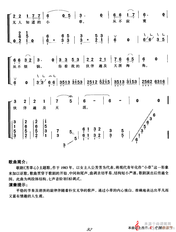 曲谱图网为您提供小草(小草弹唱谱简谱练习)找谱子,就上曲谱图网。