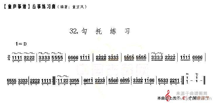 曲谱图网为您提供童庐筝谱:32.勾托练习简谱找谱子,就上曲谱图网。