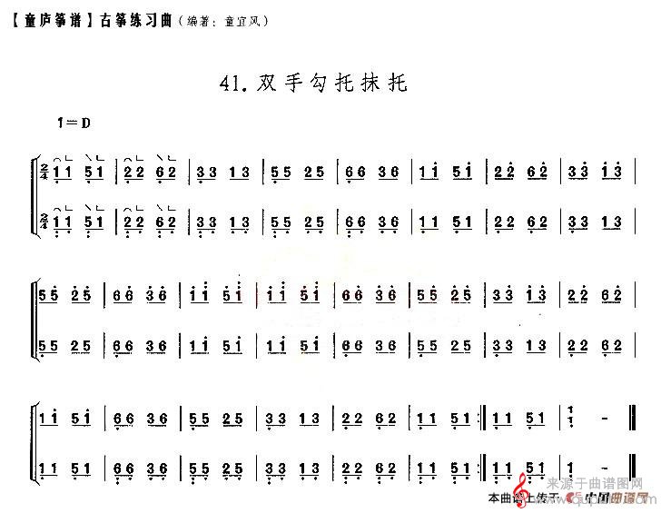 曲谱图网为您提供童庐筝谱:41.双手勾托抹托简谱曲谱找谱子,就上曲谱图网。